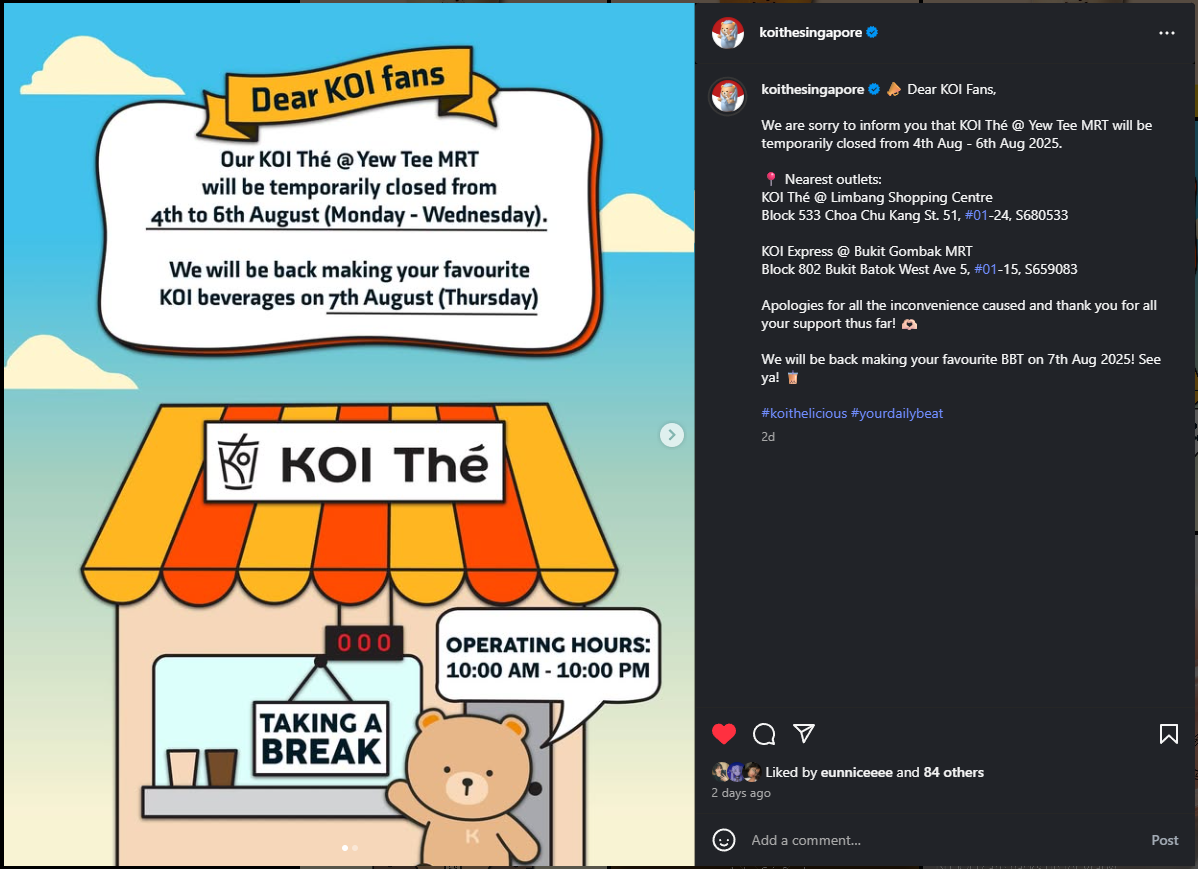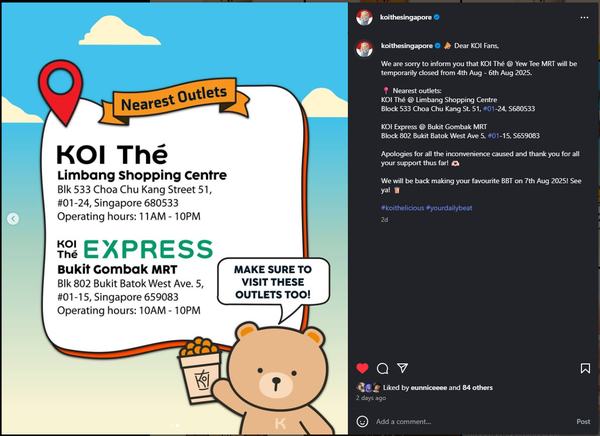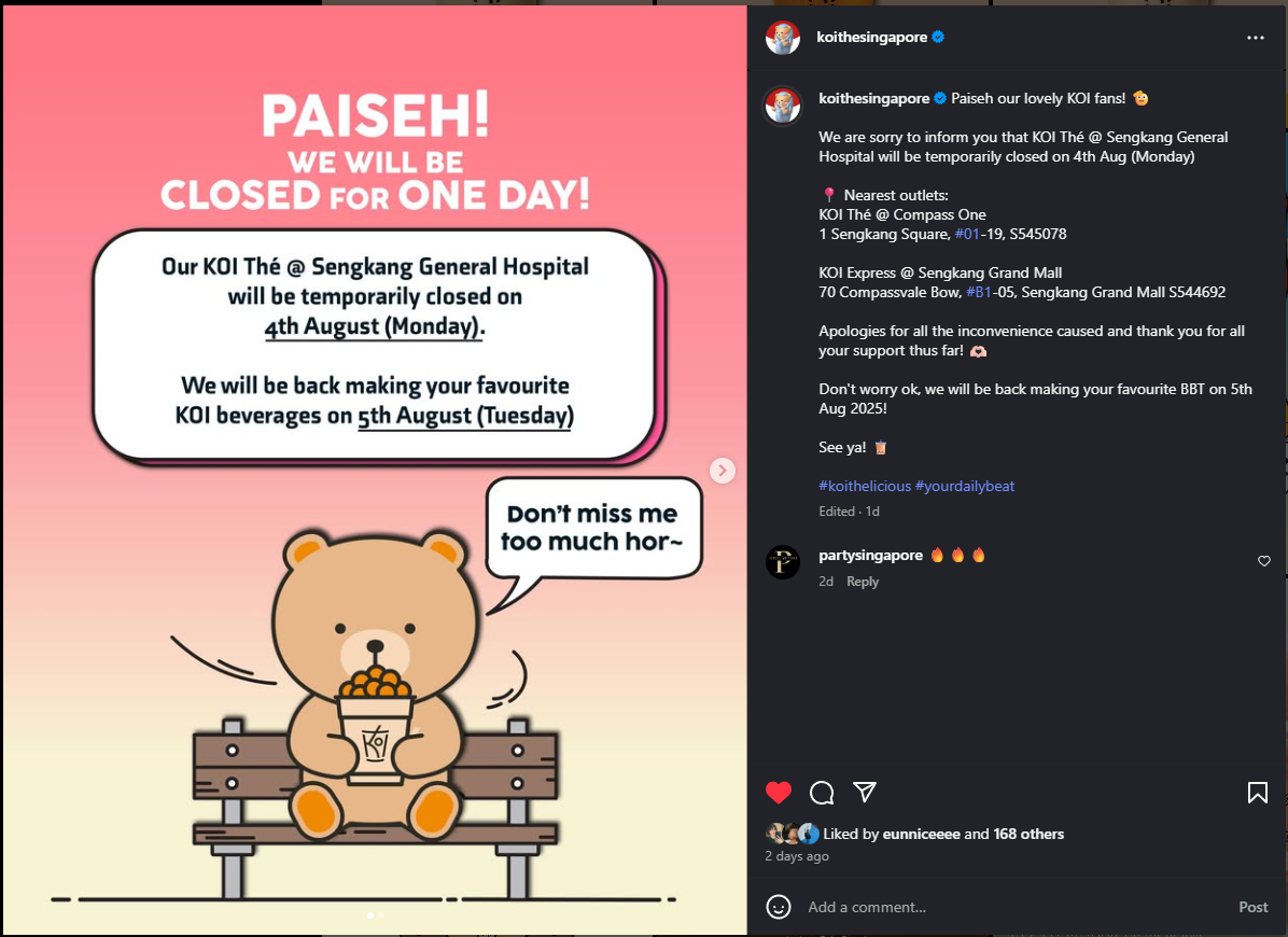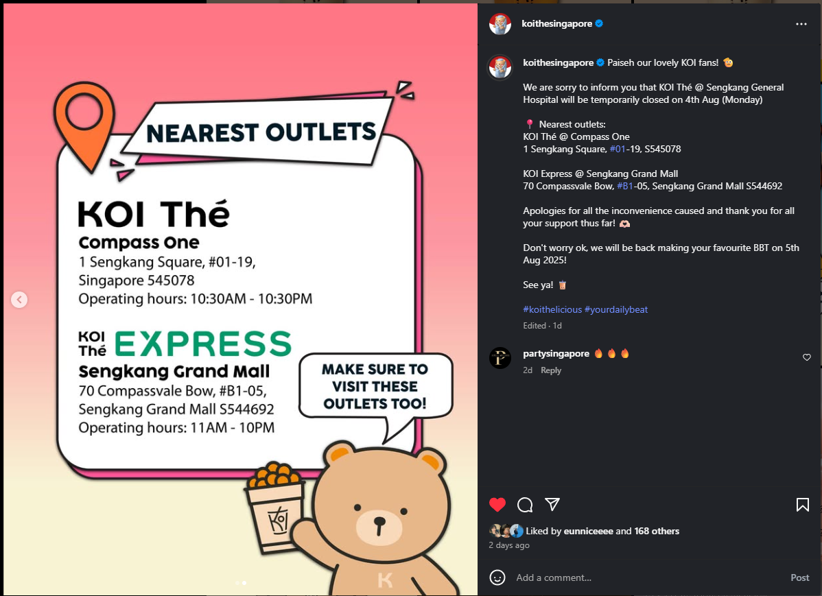[Can be found on KOI The Singapore Social Media or physical outlets]
